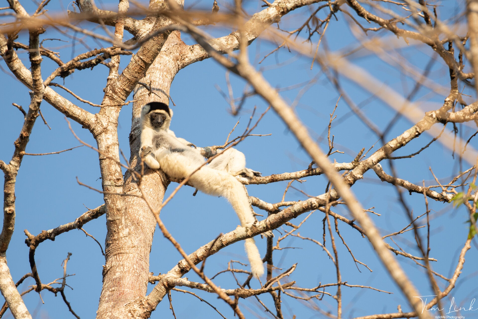 A Verreaux's sifaka enjoying the rising sun.